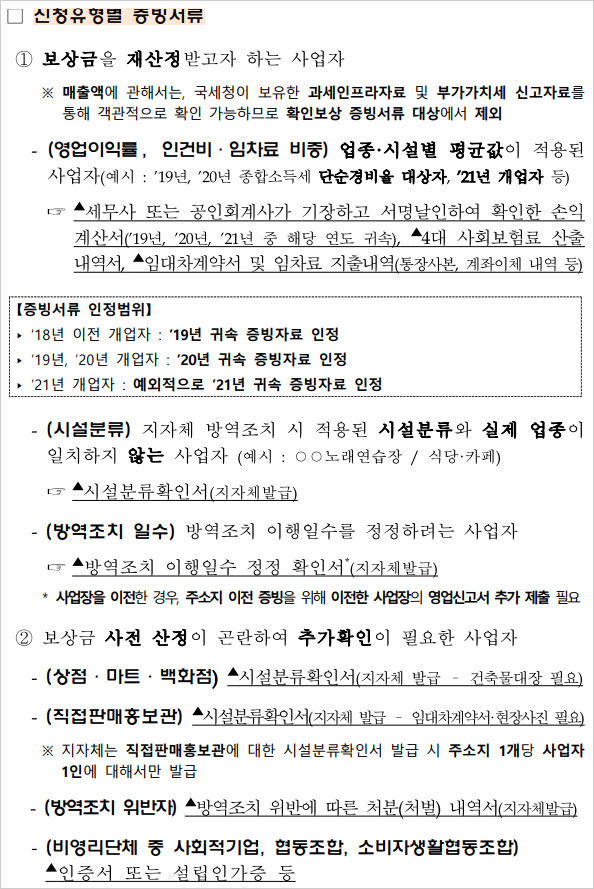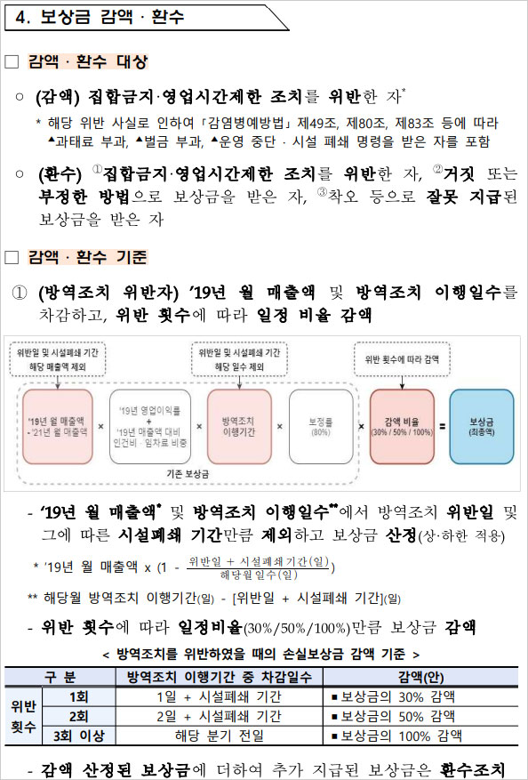 소상공인 손실보상금 감액 및 환수 대상