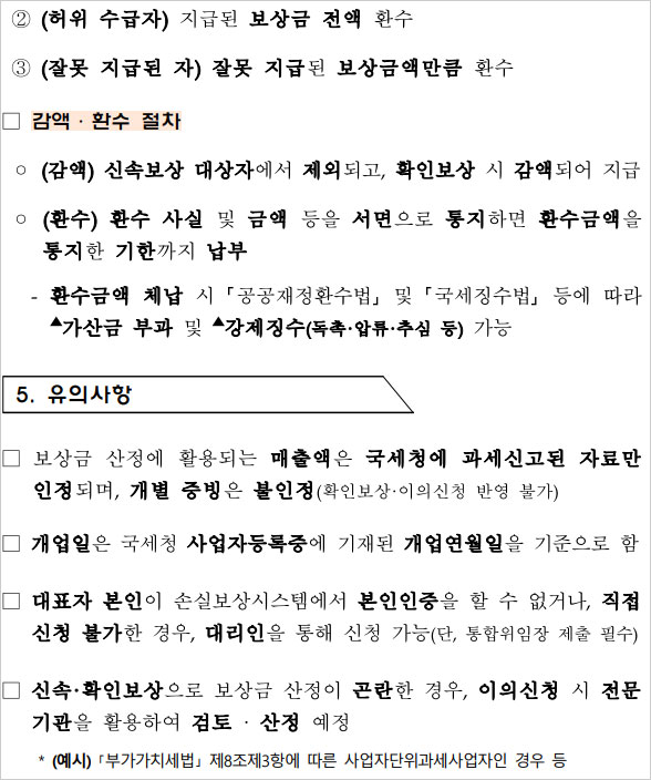 소상공인 손실보상금 대상 및 신청방법, 지급기준 공고문(출처: 중기부)