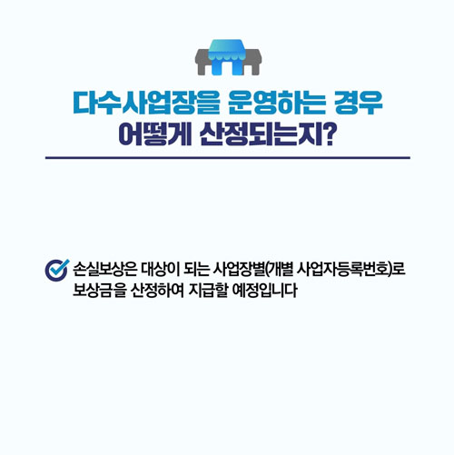 또한 사업장을 여러 개 운영하는 경우에는 대상이 되는 사업장별(개별 사업자등록번호)로 보상금을 산정해 지급할 예정이라고 합니다. 다만 방역조치를 위반한 경우에는 손실보상금 지급 전후로 보상금의 일부 또는 전액을 지급하지 않거나 환수할 수 있다고 합니다.