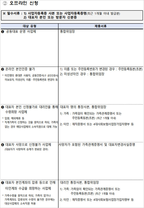 오프라인은 필요한 추가 증빙서류와 이의신청서(2021년 3분기 소상공인 손실보상 기준 등에 관한 고시(안) 별지 제2호 서식)를 사업장 소재지 관할 시, 군, 구청에 제출해 신청해야 합니다.
