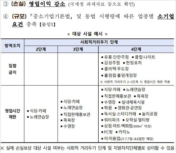 또한 사업장을 여러 개 운영하는 경우에는 대상이 되는 사업장별(개별 사업자등록번호)로 보상금을 산정해 지급할 예정이라고 합니다. 다만 방역조치를 위반한 경우에는 손실보상금 지급 전후로 보상금의 일부 또는 전액을 지급하지 않거나 환수할 수 있다고 합니다.