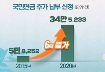 이 같은 이유로 인해 국민연금 개인 납부자가 늘고 있는 실정이라고 합니다. 실제 지난해 국민연금 추가 납부금은 2조 1,522억 원으로 2015년 2,381억 원에서 무려 9배나 뛰었다고 합니다.