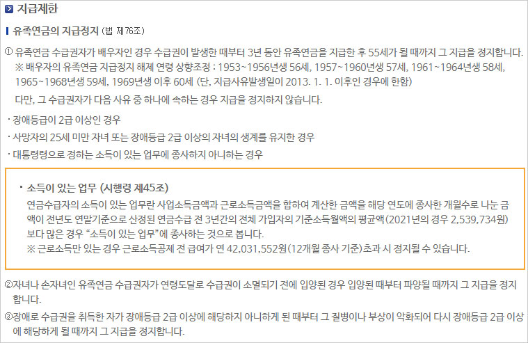 ◈ 국민연금 유족연금 수령 조건 - 수령액 지급제한