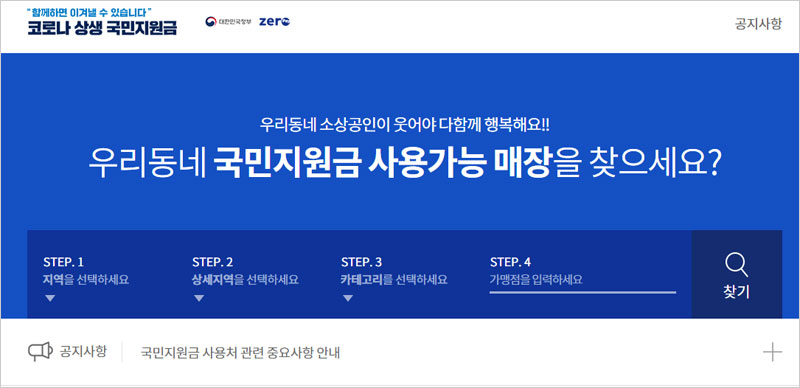 지역사랑상품권 애플리케이션이나 자치단체 홈페이지, 국민지원금 사용처 홈페이지(국민지원금사용처.kr)에서 구체적인 정부 긴급재난지원금 사용처 조회 및 지역 조회, 정부 긴급재난지원금 사용처 검색이 가능하다고 합니다.