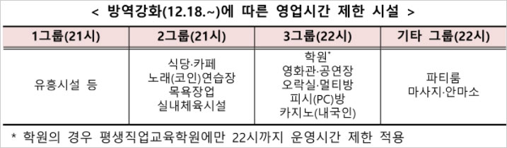 100만원 소상공인 방역지원금 대상자 조회 확인은 △1그룹(21시) 유흥시설 등 △2그룹(21시) 식당 및 카페 노래(코인)연습장 목욕장업 실내체육시설 △3그룹(22시) 학원 영화관 및 공연장 오락실 및 멀티방 피시(PC)방 카지노(내국인) △기타그룹(22시) 파티룸 마사지 및 안마소 등 4그룹이라고 합니다. 3그룹 학원의 경우 평생직업교육학원에만 22시까지 운영시간 제한이 적용된다고 합니다.