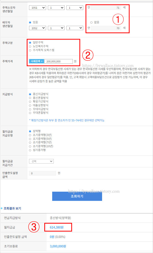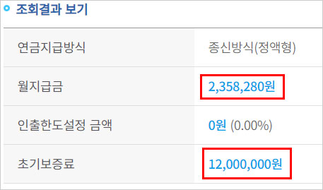 주택연금 예상연금 조회 방법 및 주택연금 예상연금 월지급금지급유형