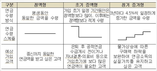 지급유형별 연금대출한도에는 차이가 없고 연금수령 스케줄에 따라 매월 받는 금액이 달라지는 것이기 때문에 본인의 경제상황을 정확히 파악해 선택하는 것이 중요하다고 합니다.