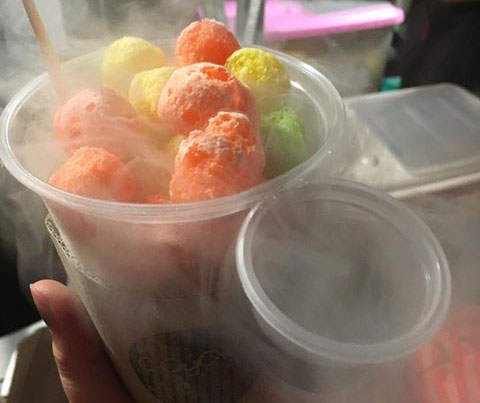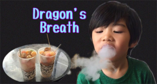 질소과자는 입이나 코에서 연기를 내뿜는 모습이 용 같아 '용가리 과자'라 불립니다. 질소과자는 액체로 만든 질소가 상온에서 기체로 기화되는 원리를 이용해 만드는데요. 액화질소가 영하 196도에 달하는 저온이라는 점을 이용해 아이스크림이나 주스 및 커피 등 시원한 음료에 사용한다고 해요.