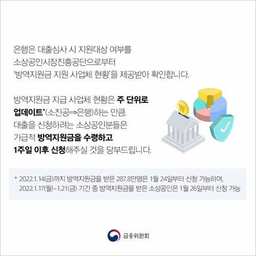 ※ 단, 방역지원금 지급일로부터 1주일 이상 경과한 후, 대출 신청이 가능합니다.
