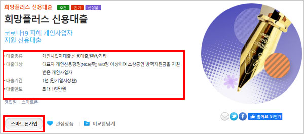 - 특징: 은행 방문없이 비대면으로 대출신청부터 실행까지 가능한 상품입니다.