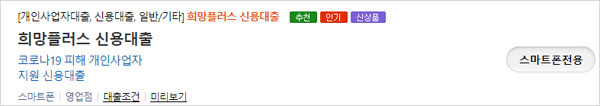 고신용 소상공인 또한 신규 운전자금 또는 대환자금 용도로 빌릴 수 있다고 합니다. 대환자금은 희망대출플러스를 신청한 은행의 기존 대출을 대환하는 조건이라고 합니다. 한도는 사업자별로 1000만원 한도이며 대출 기간은 최대 1년이라고 합니다.