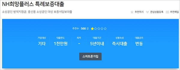 농협은행 홈페이지에서 금융상품몰을 클릭하고 농협은행을 클릭하면 홈페이지에서 중신용자를 위한 농협 소상공인 희망대출플러스 NH희망플러스 특례보증대출 상품과 고신용자를 위한 농협 소상공인 희망대출플러스 NH희망플러스 신용대출 상품을 확인 할 수 있다고 합니다.