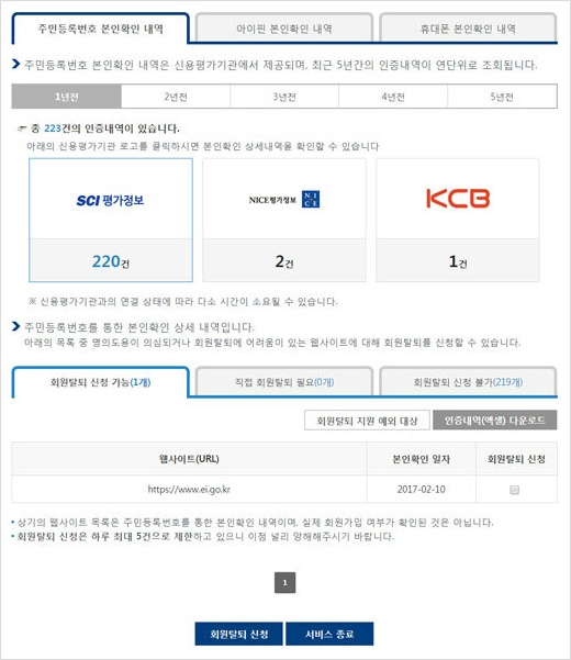 본인확인 내역 조회 및 회원탈퇴 요구는 정보주체의 고유한 권리인데요. e프라이버시 클린서비스는 개인정보 도용으로 인한 피해를 예방하기 위해 정보주체(이용자) 본인 확인을 위한 절차를 강화하였다고 합니다