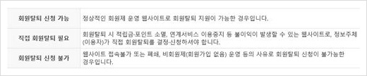 웹사이트 회원탈퇴 신청내역 및 처리결과를 확인할 수 있어요.
