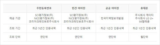 본인확인 내역 조회 및 제공 기준은 아래와 같다고 해요.
