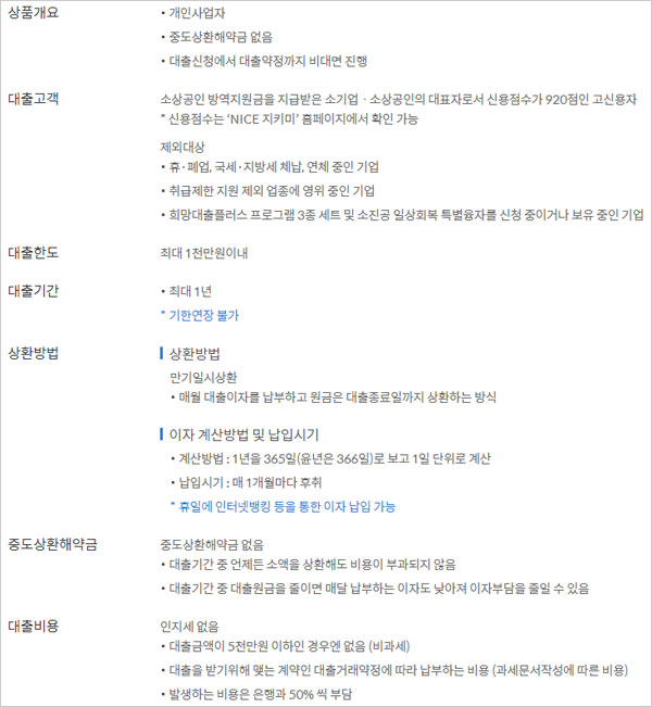 - 소상공인 방역지원금을 지급받은 소기업 및 소상공인 대표자로서 개인신용평점(나이스평가정보 기준)이 920점 이상인 고신용자가 대상이 된다고 합니다.