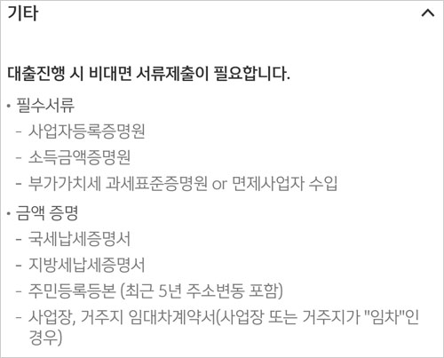 은행 지점을 방문할 경우 필용한 서류에는 ▶사업자 등록증, ▶부가세과세표준증명원, ▶국세 및 지방세 납세증명서, ▶부동산등기부등본(또는 임대차계약서), ▶소득금액증명원 등 6개 서류를 구비해야 합니다. 이에 더해 법인사업자의 경우에는 ▶등기사항전부증명서, ▶법인인감 증명서, ▶ 법인인감 등을 구비해야 한다고 합니다.