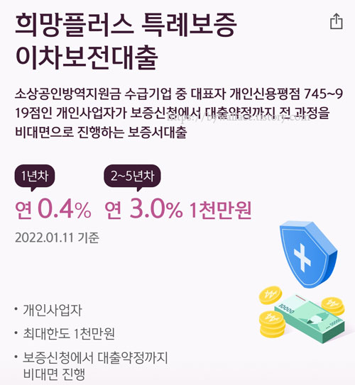 소상공인 희망대출플러스는 소상공인의 피해회복을 지원하기 위해 신용도에 따라 연 1~1.5% 금리로 최대 1000만원까지 대출해 주는 총 10조원 규모의 정책자금이라고 합니다. 1월 24일부터 신청을 받고 있는 소상공인 희망대출플러스는 중신용자 대상의 지역신용보증재단 특례보증과 고신용자 대상의 시중은행 이차보전으로 진행된다고 합니다.