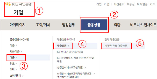 - 대출신청방법 : 모바일(KB기업스타뱅킹)