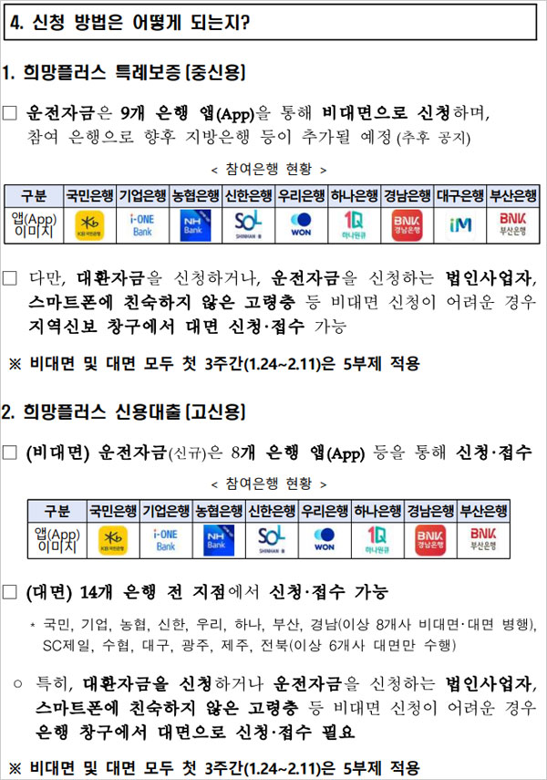 - 모바일(KB기업스타뱅킹) 신청경로 : 상품라운지 > 대출 > KB희망플러스 특례보증 이차보전 협약대출.