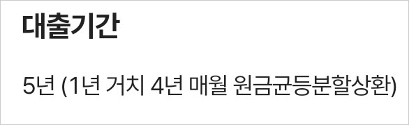 - 대출기간: 5년(1년 거치 4년 분할상환)