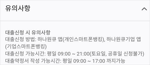 - 대출신청방법: 하나원큐 앱(개인스마트폰뱅킹), 하나원큐기업 앱(기업스마트폰뱅킹)
