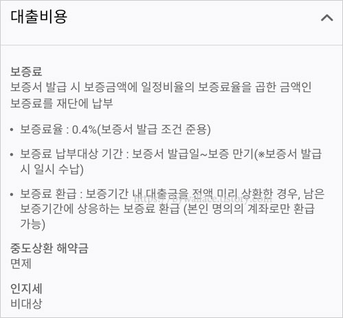 - 보증료율 : 0.4%(보증서 발급 조건 준용)