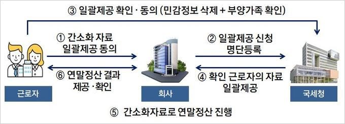이용을 희망하는 회사는 근로자의 신청을 받아 신청자 명단을 내년 1월 14일까지 홈택스에 등록하면 된다고 하는데요. 다만 간소화자료 일괄제공 서비스 제도는 의무사항이 아닌 서비스 이용을 희망하는 회사가 자율적으로 신청가능하다고 합니다.