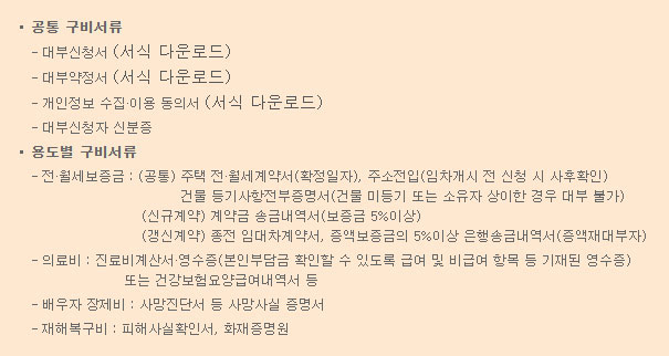 공통구비서류와 의료비 및 배우자 장제비, 전 월세자금 등 용도별 구비서류를 준비해야 합니다.
