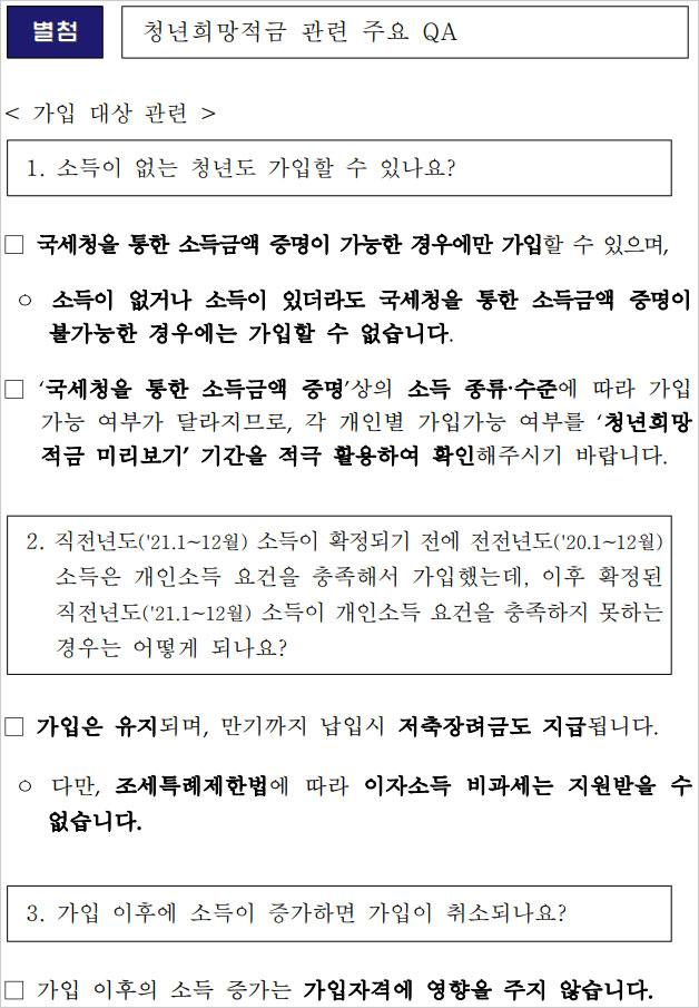 Q. 청년희망적금 가입대상 - 소득이 없는 청년도 가입할 수 있나요?