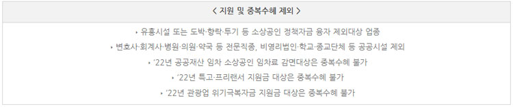 < 지원 및 중복수혜 제외 대상 >