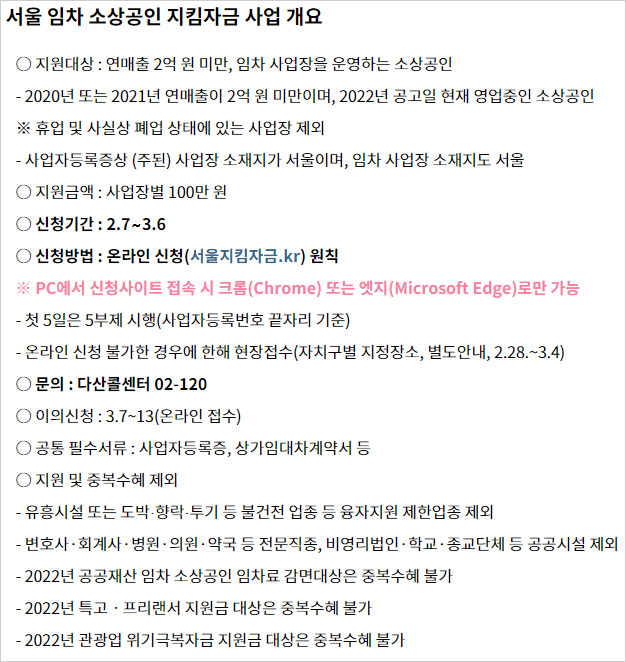 5. 서울시 임차 소상공인 자영업자 지킴자금 유의사항