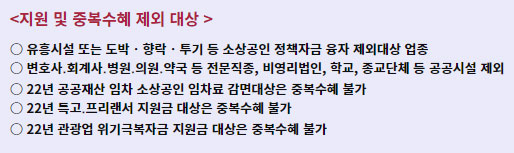 < 지원 및 중복수혜 제외 대상 >