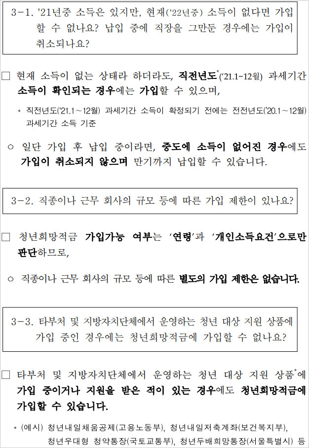Q. 청년희망적금 가입대상 - 소득이 없는 청년도 가입할 수 있나요?