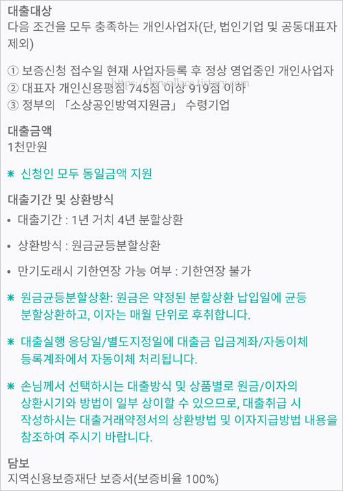 - 금리: 기준금리 1.43%(91일물 CD유통수익률)+1.70(협약가산금리)-2.60%(이차보전율)