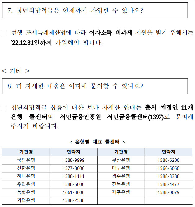 다음은 2022 청년희망적금 자격조건 및 2022 청년희망적금 신청 방법, 2022 청년희망적금 신청기간 등 청년희망적금 관련 간단 Q&A 라고 합니다. 참고하셨으면 좋겠습니다.