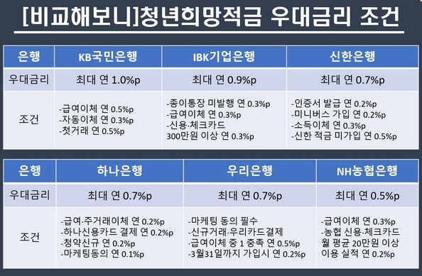 ◈ 국민은행 청년희망적금 우대금리 조건 비교