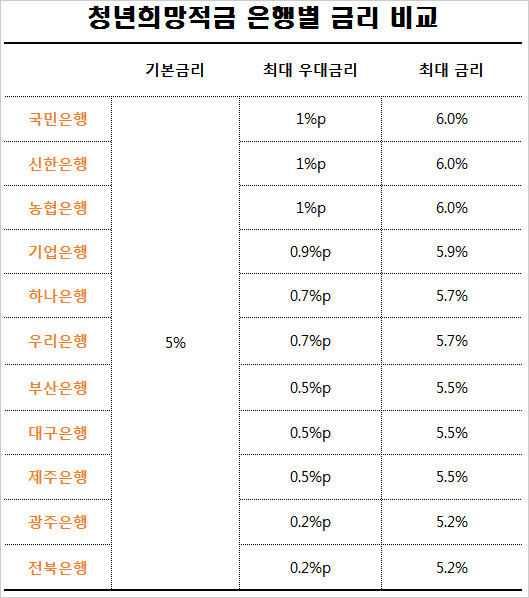 ◈ 국민은행 청년희망적금 우대금리 조건 비교