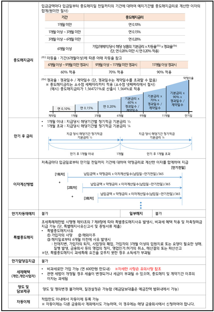 - 지급방법: 만기해지시 납입원그 및 이자와 합산하여 지급(비과세)