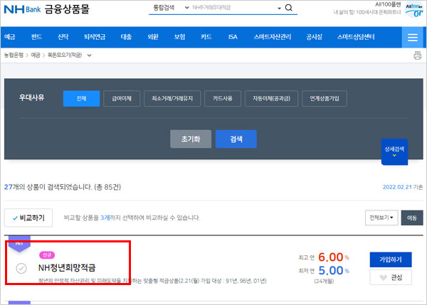 NH농협 청년희망적금 신청방법 및 가입자격조건 우대금리 조회