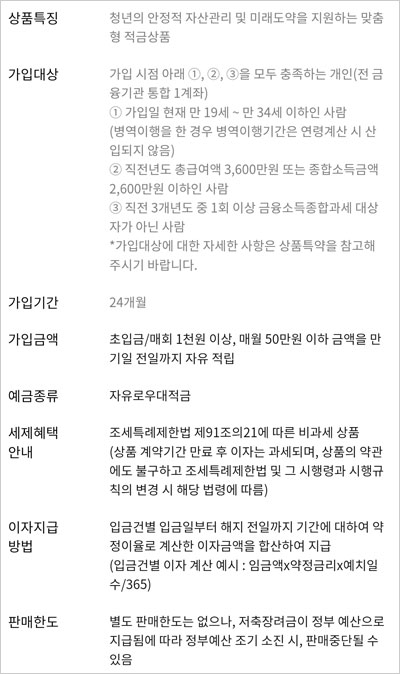 ▣ NH농협 청년희망적금 신청 방법 및 가입대상 자격조건 상품설명서
