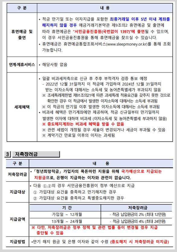 - 지급방법: 만기해지시 납입원금 및 이자와 합산하여 지급(비과세)