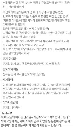 - 납입금액의4%: 적금가입 13개월부터 24개월 납입시 최대 24만원