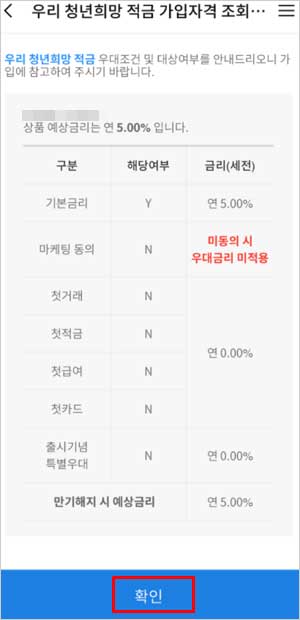 ▶ 우리은행 청년희망적금 가입대상 자격조건 조회