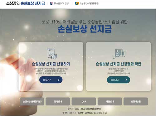 ◈ 소상공인 손실보상 선지급 250만원 홈페이지 지원방식