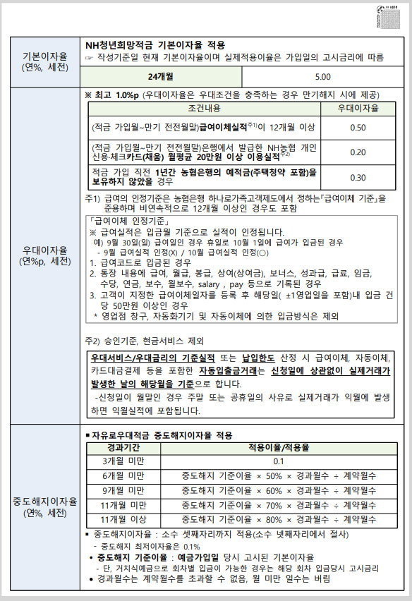 청년희망적금 농협 가입대상, 자격조건 우대 금리 상품설명서