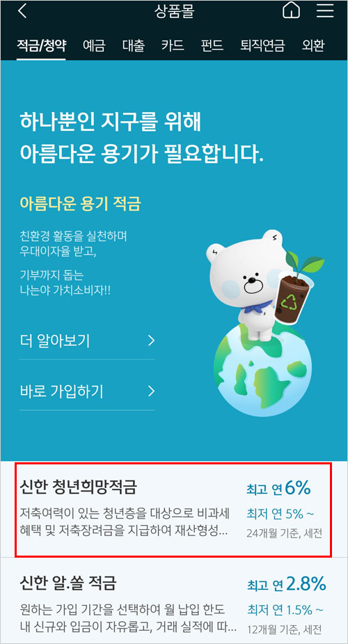 ▶ 청년희망적금 신한은행 가입대상 자격조건 조회