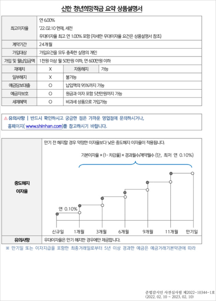 신한은행 청년희망적금 요약 상품설명서 출처: 신한은행