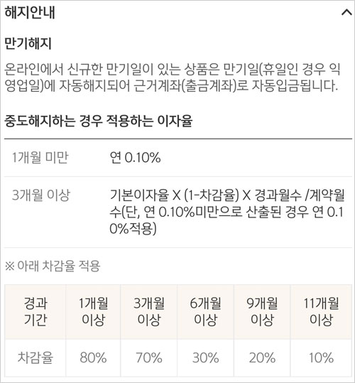 - 12개월 이내 : 1개월~12개월 적립금액의 2%, 최대12만원