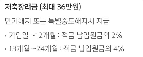 - 24개월 이내 : 13개월~24개월 적립금액의 4%, 최대 24만원